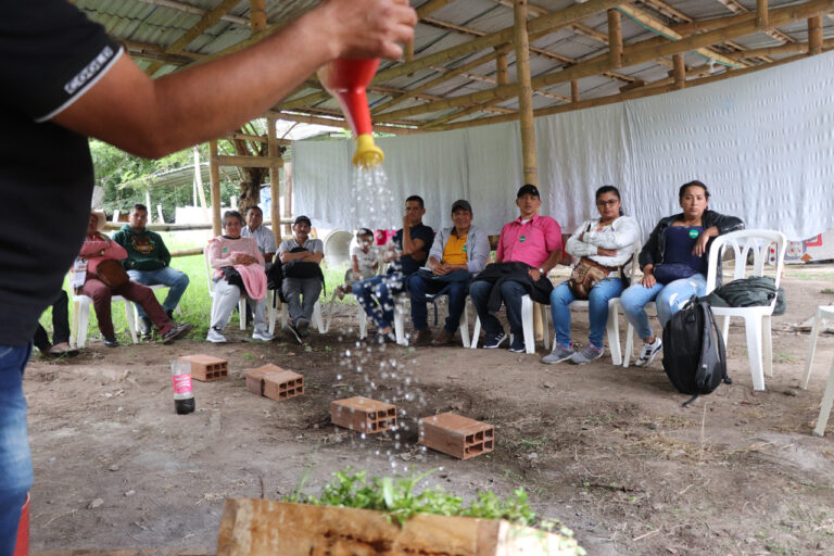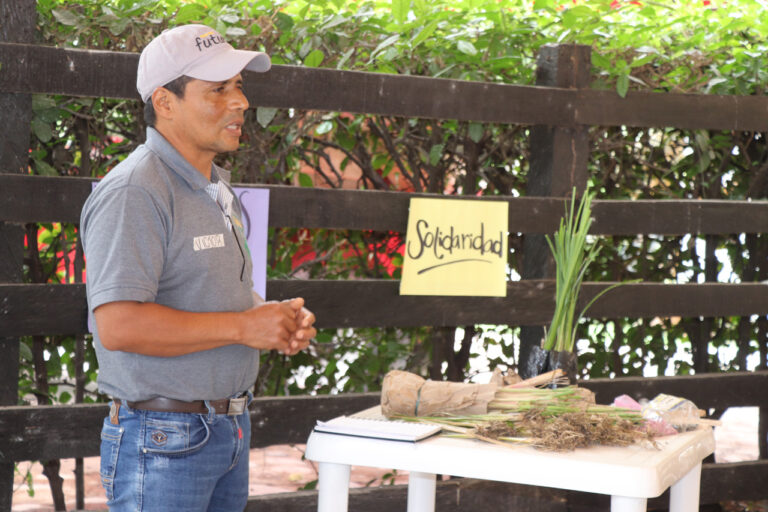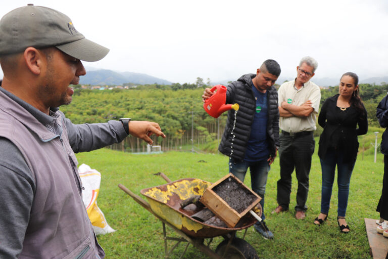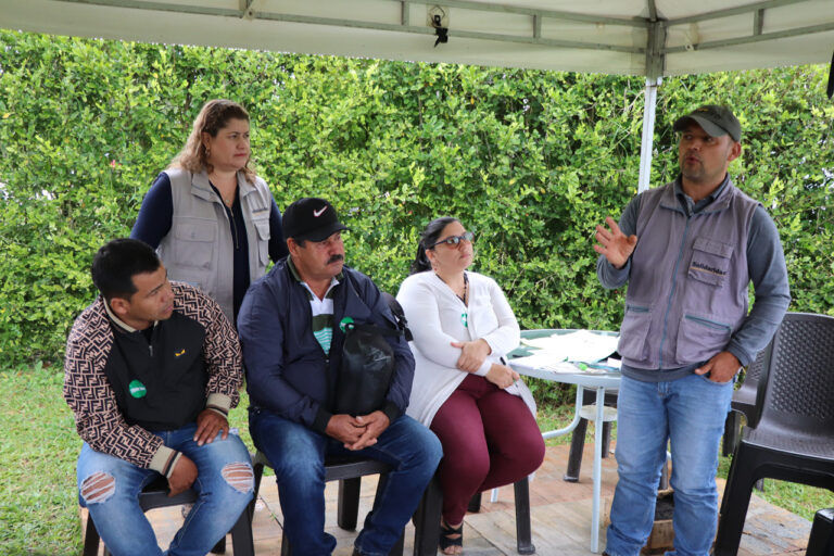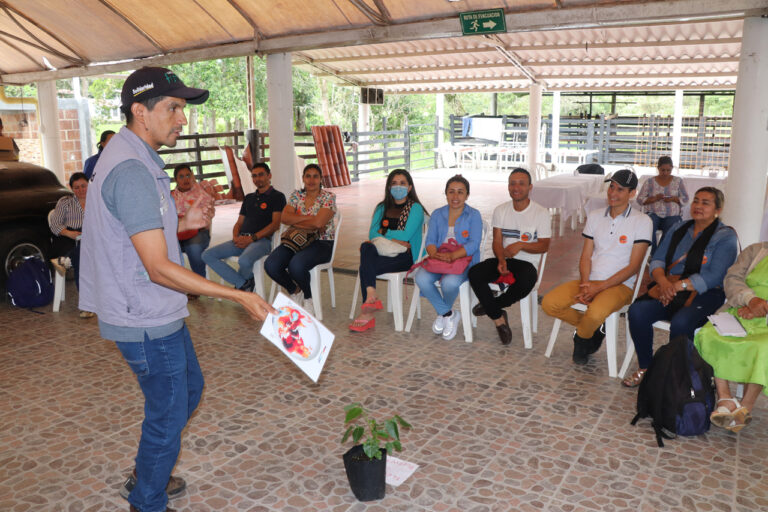 Se contó con la participación de dos caficultores líderes de Risaralda Luz Aide Bañol de Quinchía y Víctor Valencia de Balboa quienes ya implementan prácticas de agricultura sostenible en sus fincas. Este espacio de aprendizaje entre iguales fue altamente valorado por los asistentes al evento, que de manera generalizada resaltaron esta estrategia como algo novedoso en el proceso de capacitación.
